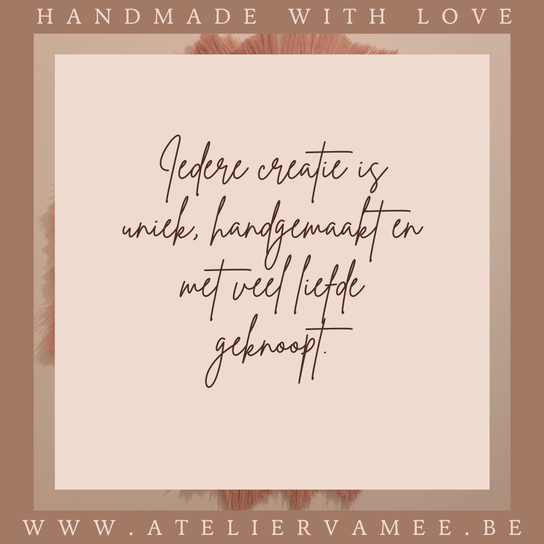 Met veel liefde, geduld en oog voor detail creëeren we unieke macramé-spiegels die je interieur een natuurlijke en sfeervolle uitstraling geven. Elke spiegel wordt met de hand geknoopt en samengesteld met mooie materialen, waardoor elk stuk zijn eigen karakter heeft.